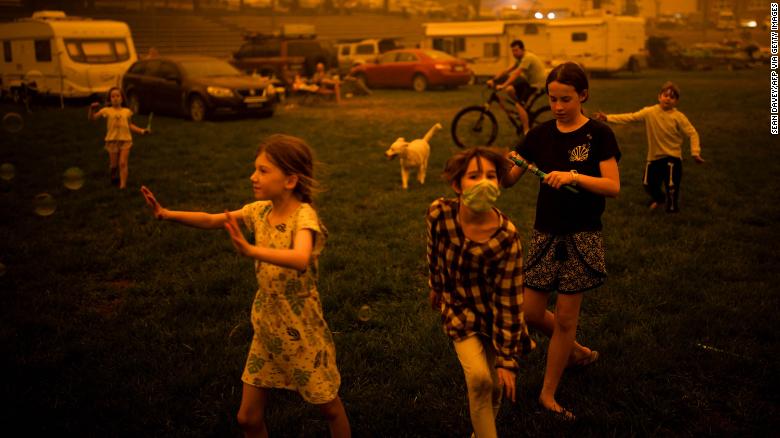 Los niños evacuados de las áreas afectadas por los incendios forestales juegan en el recinto ferial de la ciudad de Bega, al sur de Nueva Gales del Sur, 31 de diciembre