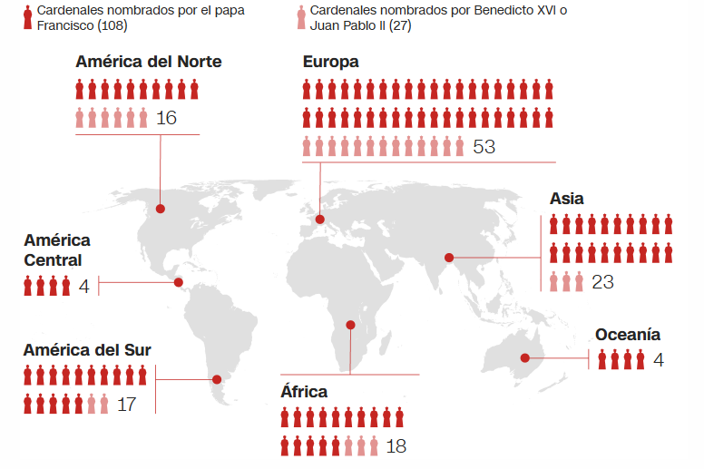 Distribución geográfica de los electores en el Colegio Cardenalicio.