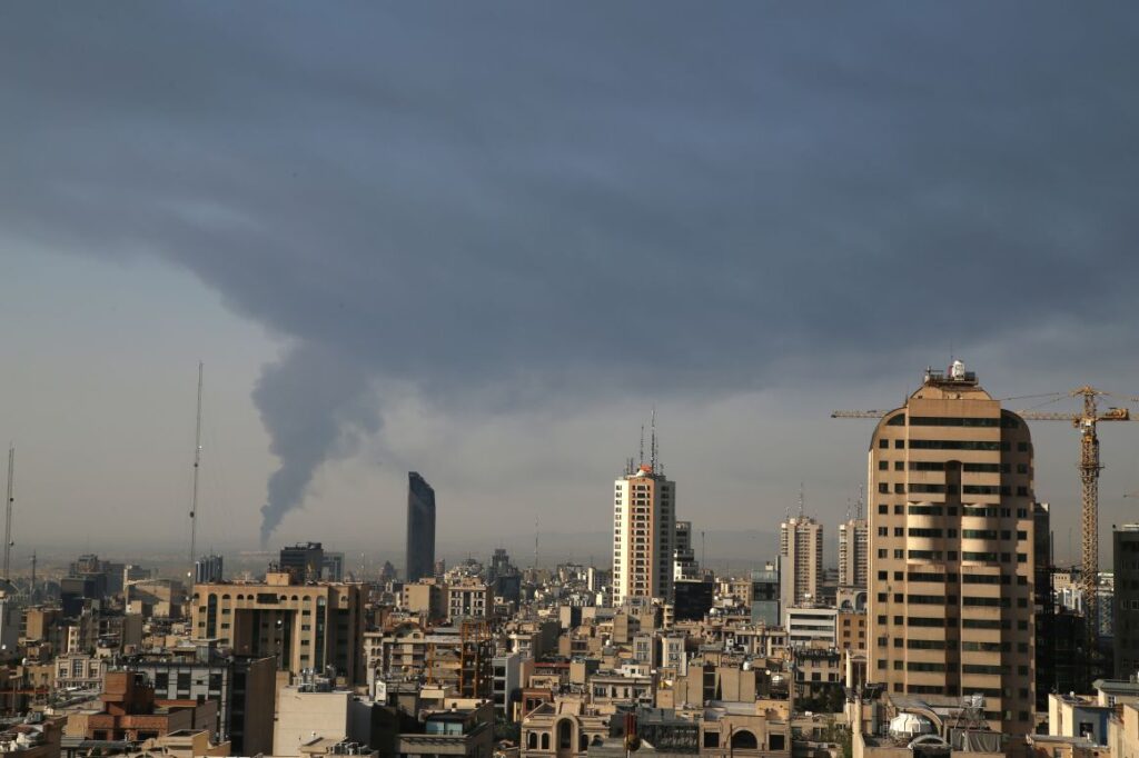 Una enorme humareda se eleva desde unas instalaciones petrolíferas después de que parecieran haber sido alcanzadas por un ataque israelí el sábado en el sur de Teherán. Mohammad Ghadamali/AP vía CNN Newsource