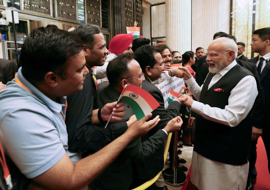 El Primer Ministro de la India, Modi, es recibido por la comunidad india a su llegada a la cumbre de la Organización de Cooperación de Shanghai en el hotel de Tianjin, China, el 30 de agosto de 2025. Oficina de Información de Prensa de la India/Reuters