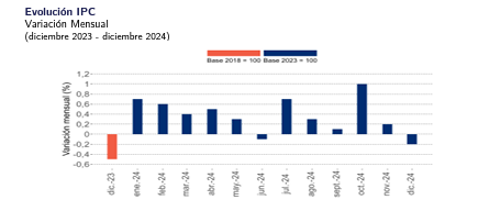 Este miércoles, el Instituto Nacional de Estadísticas (INE) reveló que el Índice de Precio al Consumidor (IPC) de diciembre de 2024 anotó una variación mensual de -0,2%.