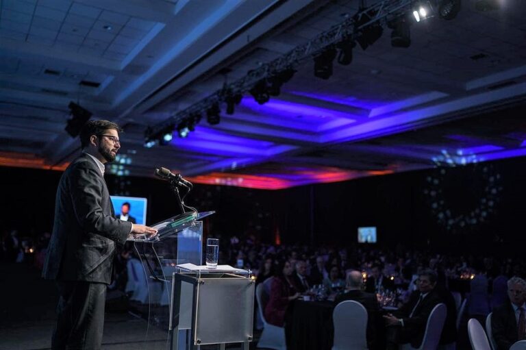 El mandatario participó en la Cena Anual de la Minería 2023, donde destacó la aspiración de Chile para encabezar el desarrollo de la industria de litio, los desafíos del país en torno al rubro, como elevar la producción y desarrollar la pequeña y mediana industria, y anunció proyectos de ley relacionados con permisos sectoriales. También se refirió a la aprobación del Royalty Minero.
