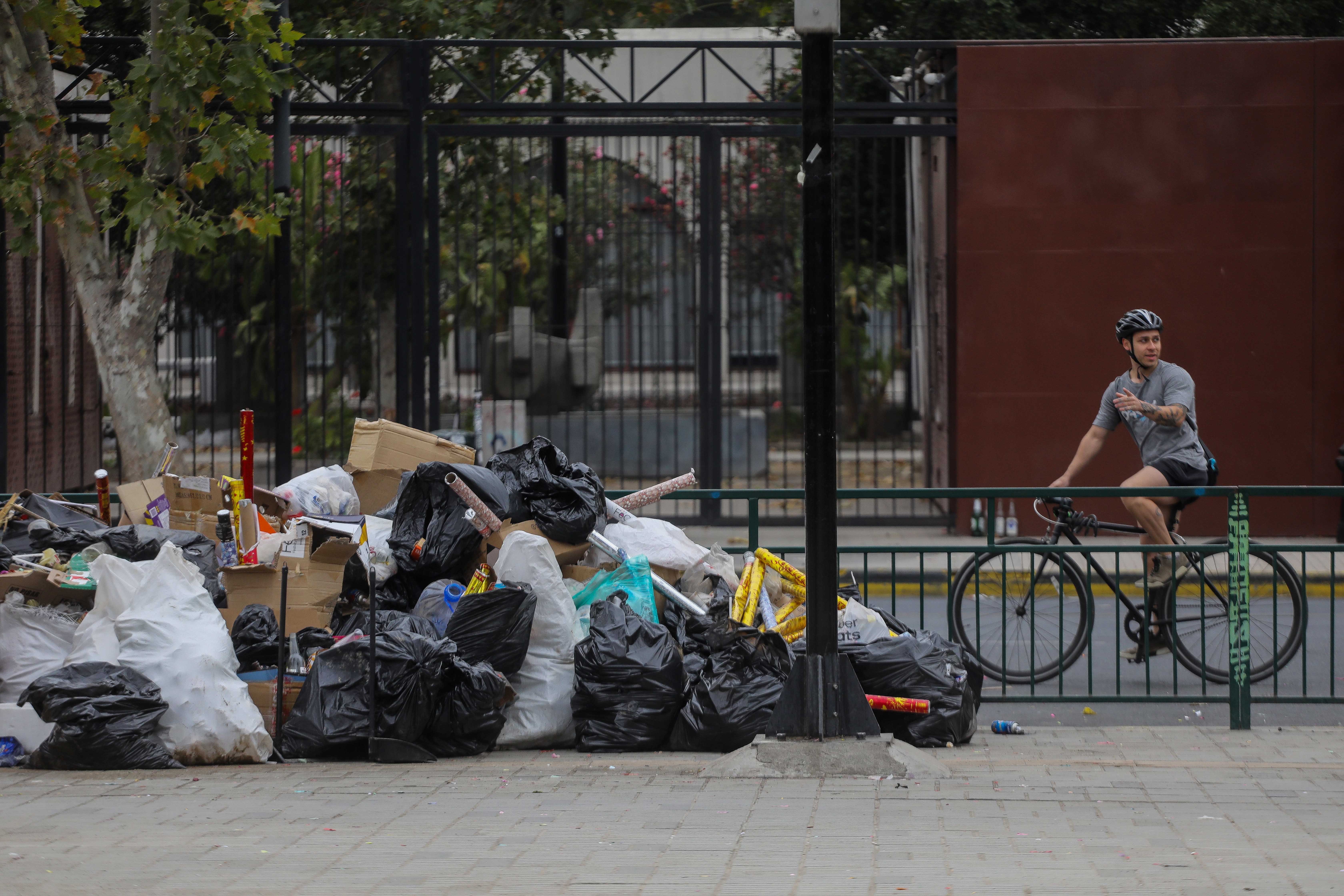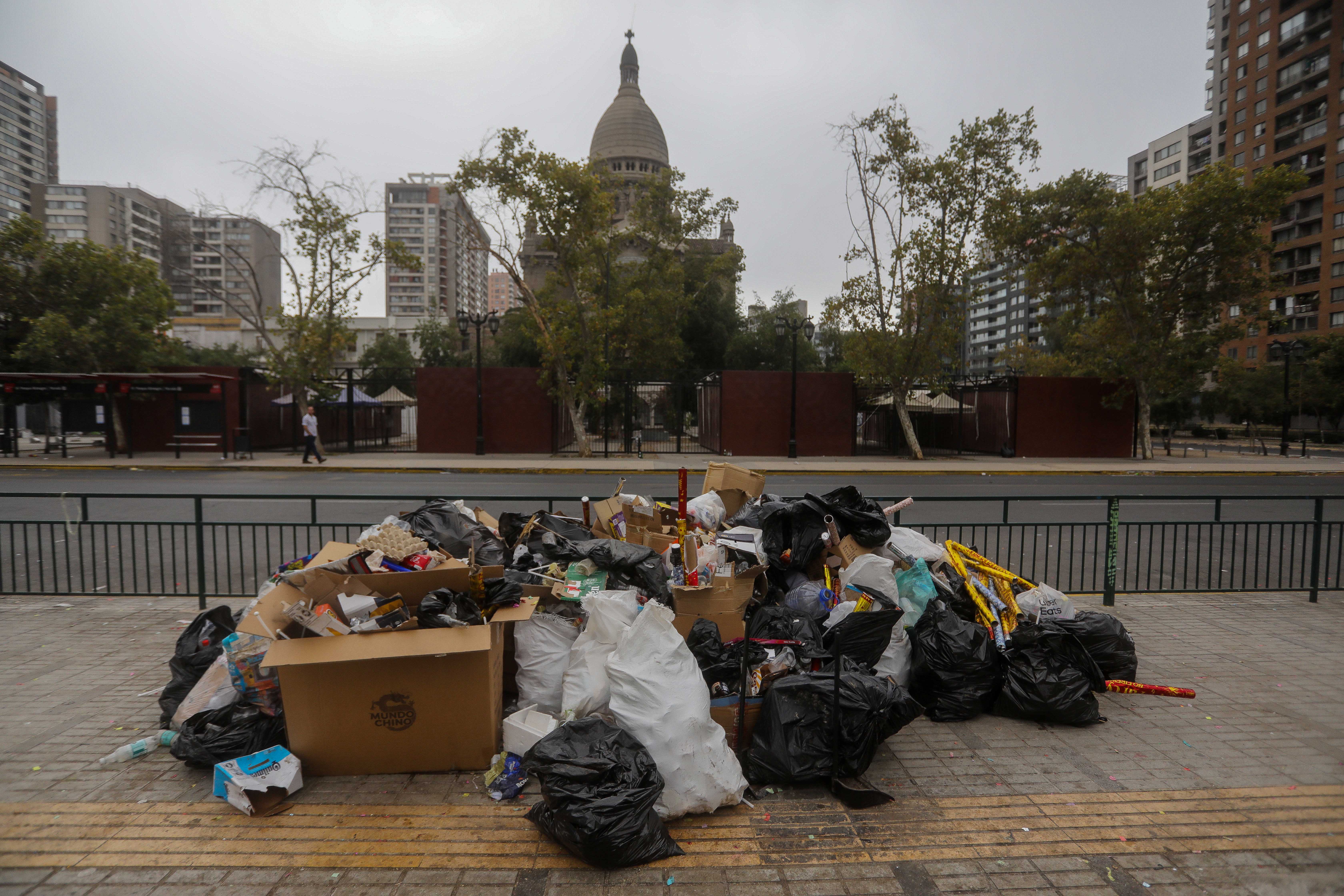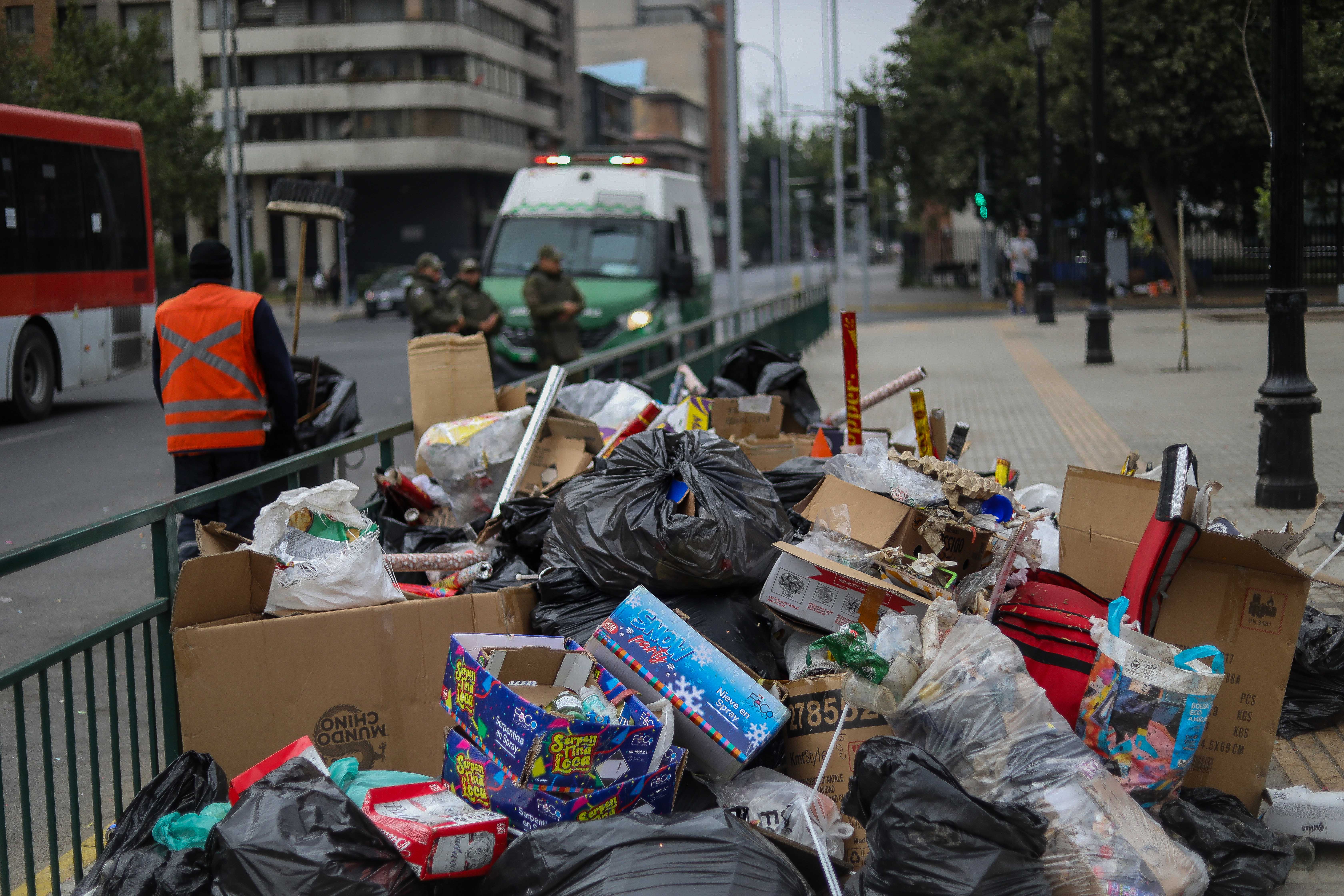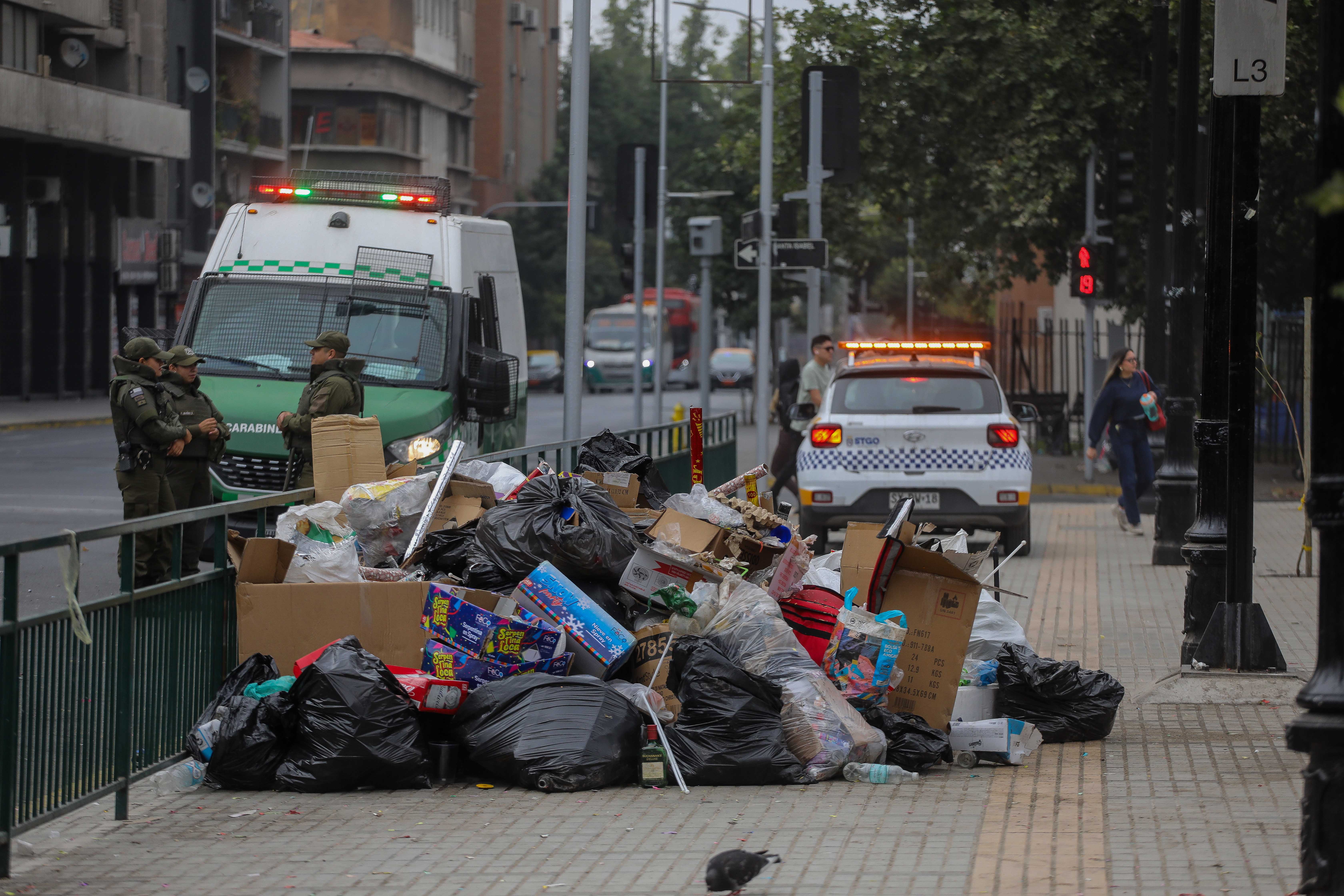 El Parque Almagro de Santiago amaneció este domingo con grandes cantidades de basura, botellas y restos de celebraciones, luego de la concentración registrada la noche anterior tras conocerse la captura de Nicolás Maduro en Venezuela.