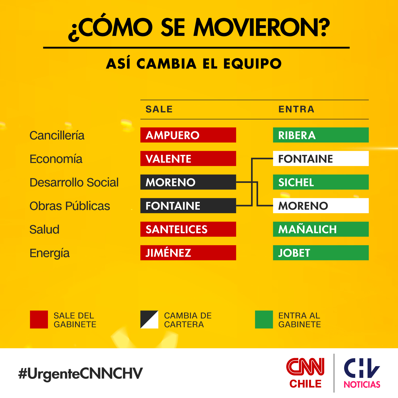 Entre los trascendidos, se habló de un posible intercambio de ministerios del denominado comité político. A las críticas que exigían la caída del ministro del Interior Andrés Chadwick por su rol en el caso Catrillanca, se sumaban los rumores de la salida de Gonzalo Blumel de la Segpres para reemplazar a Cecilia Pérez como vocera de Gobierno. Asimismo, Pérez asumiría como titular de Deportes en desmedro de Pauline Kantor.