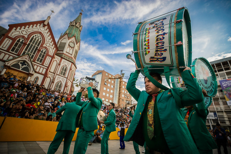 Conjuntos provenientes de Bolivia se unieron a las agrupaciones de Arica, generando los vibrantes sonidos de los bronces y los bombos que resonaron con fuerza en las calles de la ciudad norteña.
