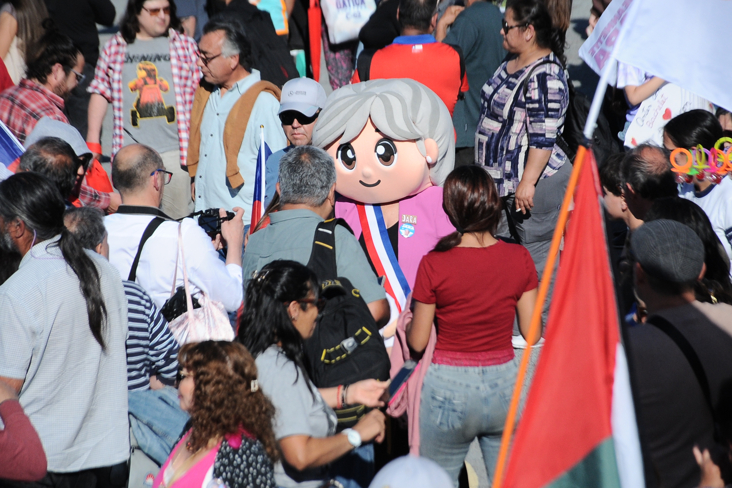 La abanderada del pacto Unidad por Chile, Jeannette Jara, eligió la Plaza de Maipú, el mismo lugar donde hace una semana estuvo Johannes Kaiser. El comando estima que asistieron cerca de 20 mil personas.
