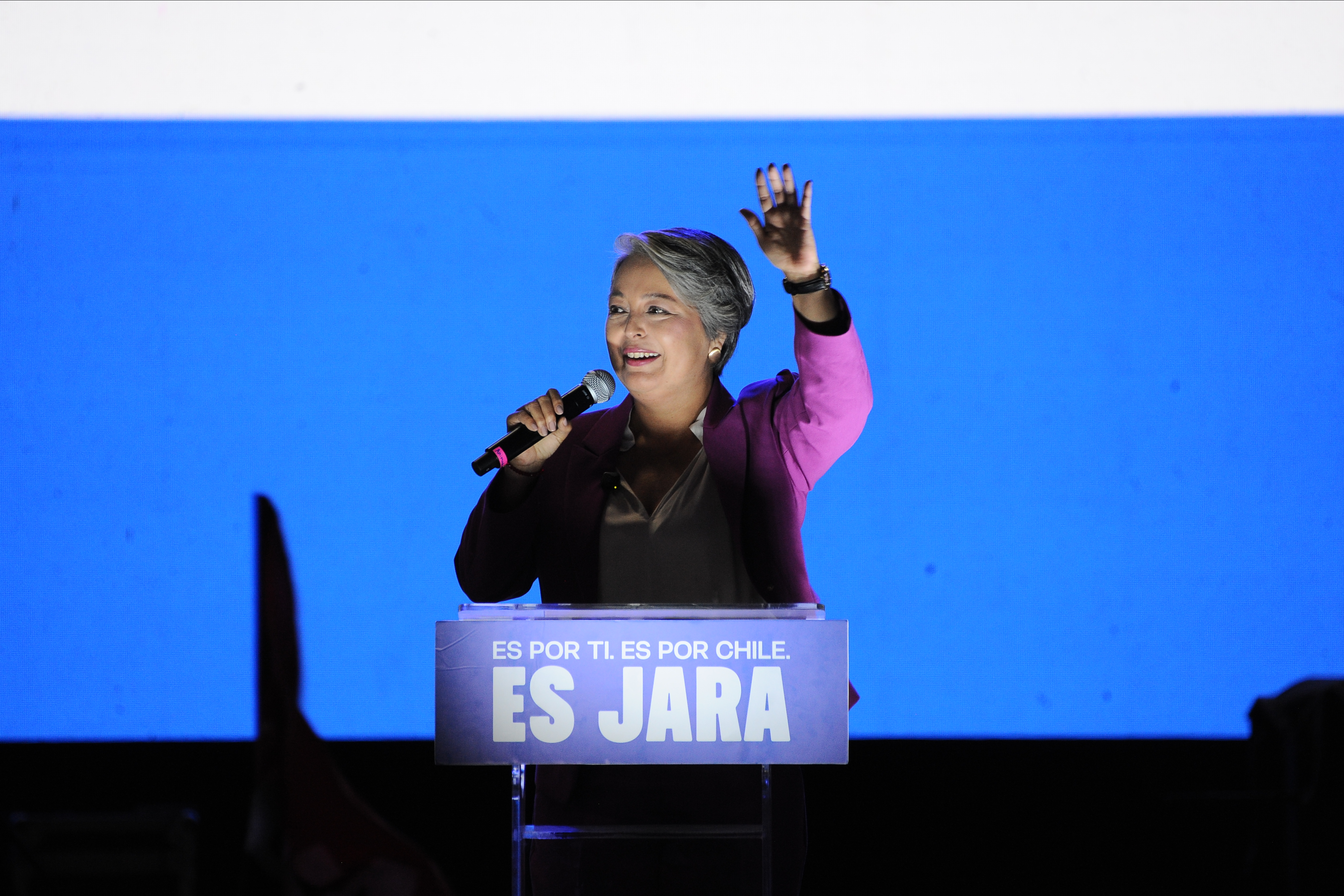 En su intervención, Jara hizo un llamado al denominado “votante indeciso” y, a su vez, esbozó un guiño respecto al vidrio blindado que utilizó su contendor José Antonio Kast en una actividad realizada en Viña del Mar.