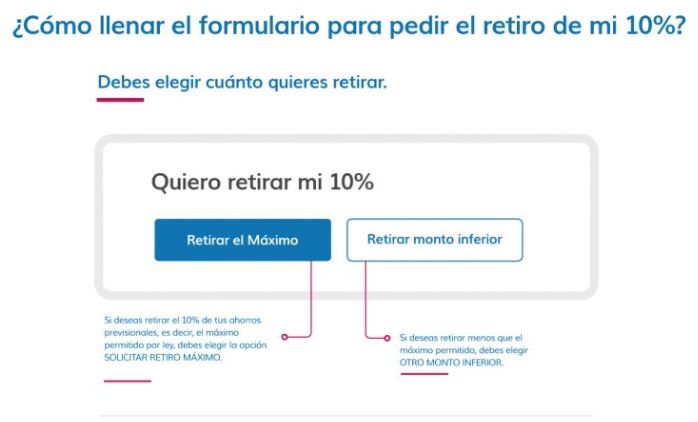 Si decidiste retirar el totalidad del monto posible, es decir el 10%, opta por la primera alternativa.