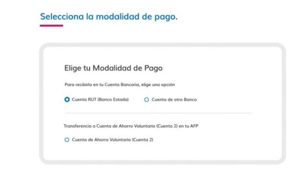 Para ello, tienes dos alternativas: que el depósito se realice en una cuenta bancaria (ya sea cuenta RUT del BancoEstado o de otro banco a especificar) o transferencia a una Cuenta de Ahorro Voluntario (Cuenta 2) de tu AFP.
