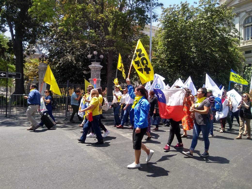 En medio de este debate, este lunes se realizó una nueva movilización de la Coordinadora No + AFP que llegó hasta la zona donde se encuentran los Tribunales de Justicia en Santiago y la sede del ex Congreso Nacional.