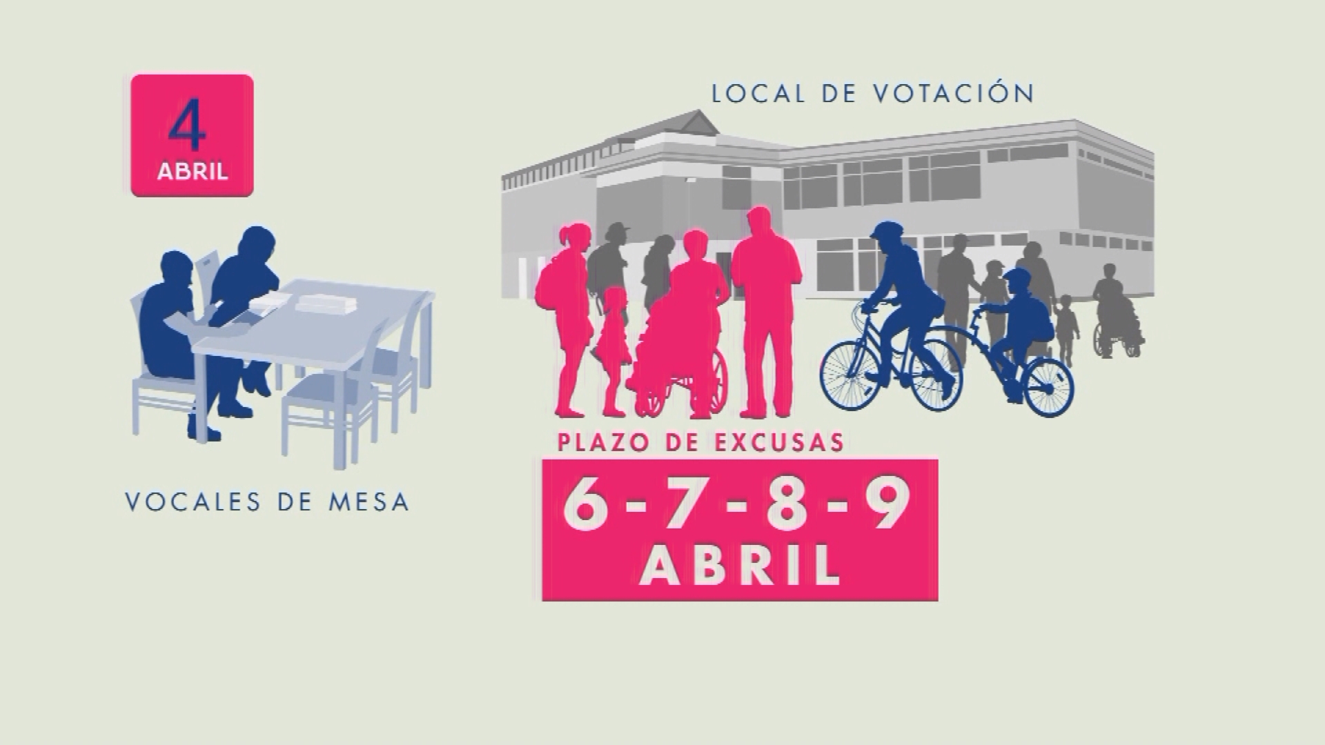 El 4 de abril se publicará la nómina de vocales y de los locales de votación que funcionarán en el proceso. Y entre el 6 y 8 de abril las personas designadas como vocales podrán presentar sus excusas.