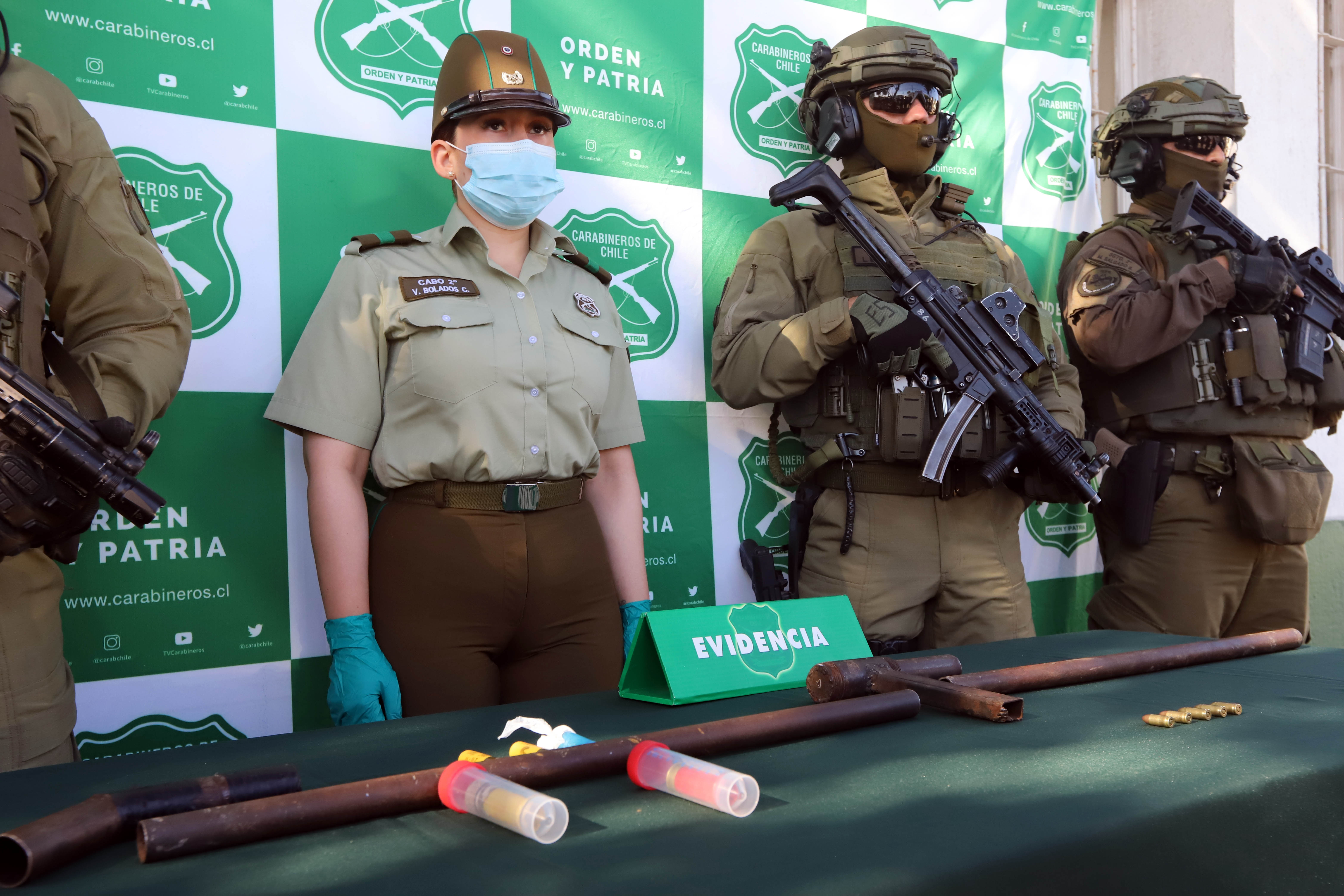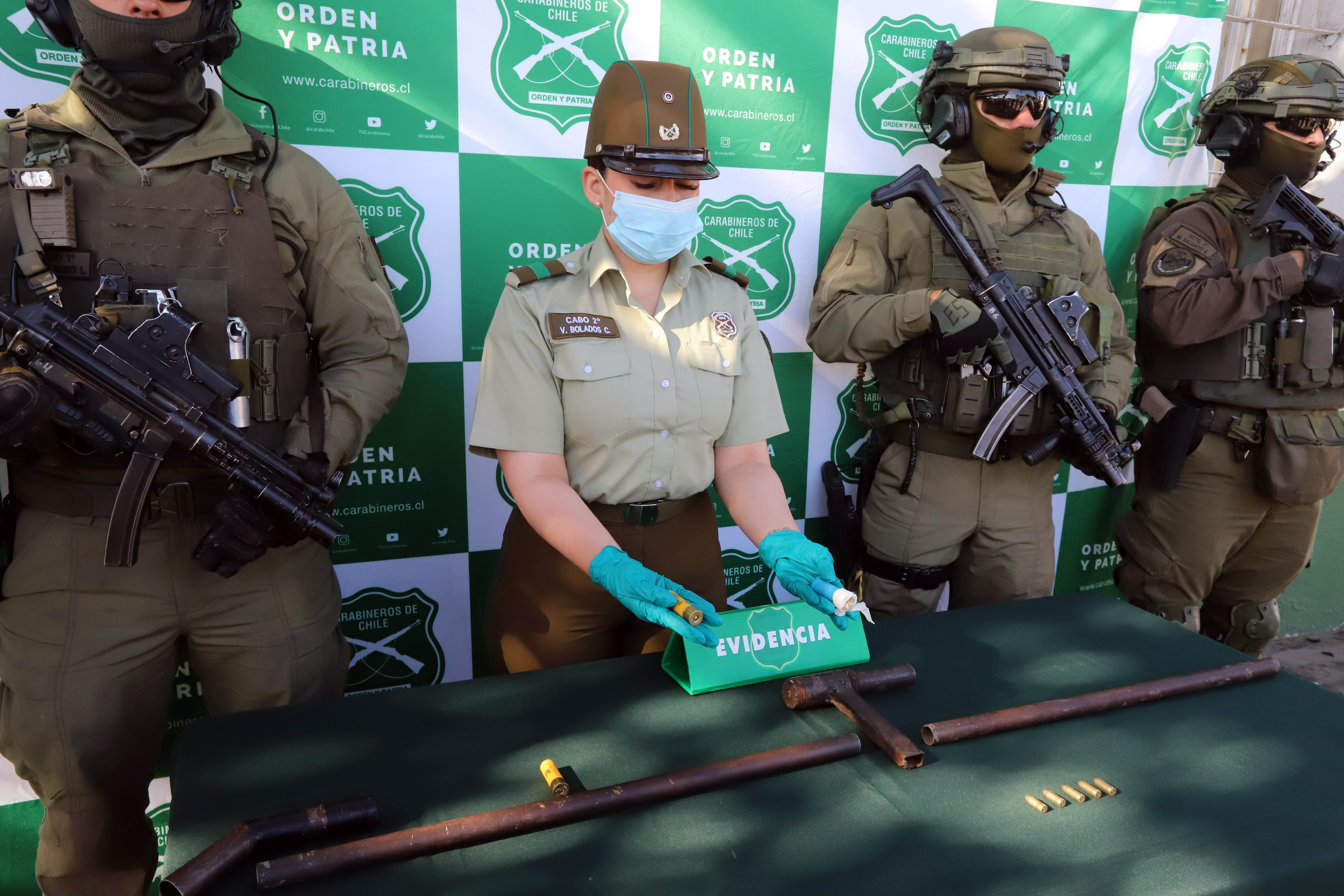 Durante los registros, personal policial incautó municiones, partes de una escopeta hechiza y vestimenta, elementos que fueron encontrados en el sector de Pelancura, dentro del asentamiento ilegal.