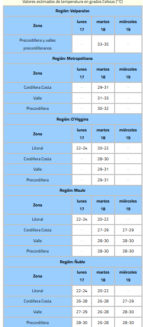 Este lunes, la Dirección Meteorológica de Chile (DMC) actualizó su aviso meteorológico por altas temperaturas en diversas regiones del centro y centro-sur del país.