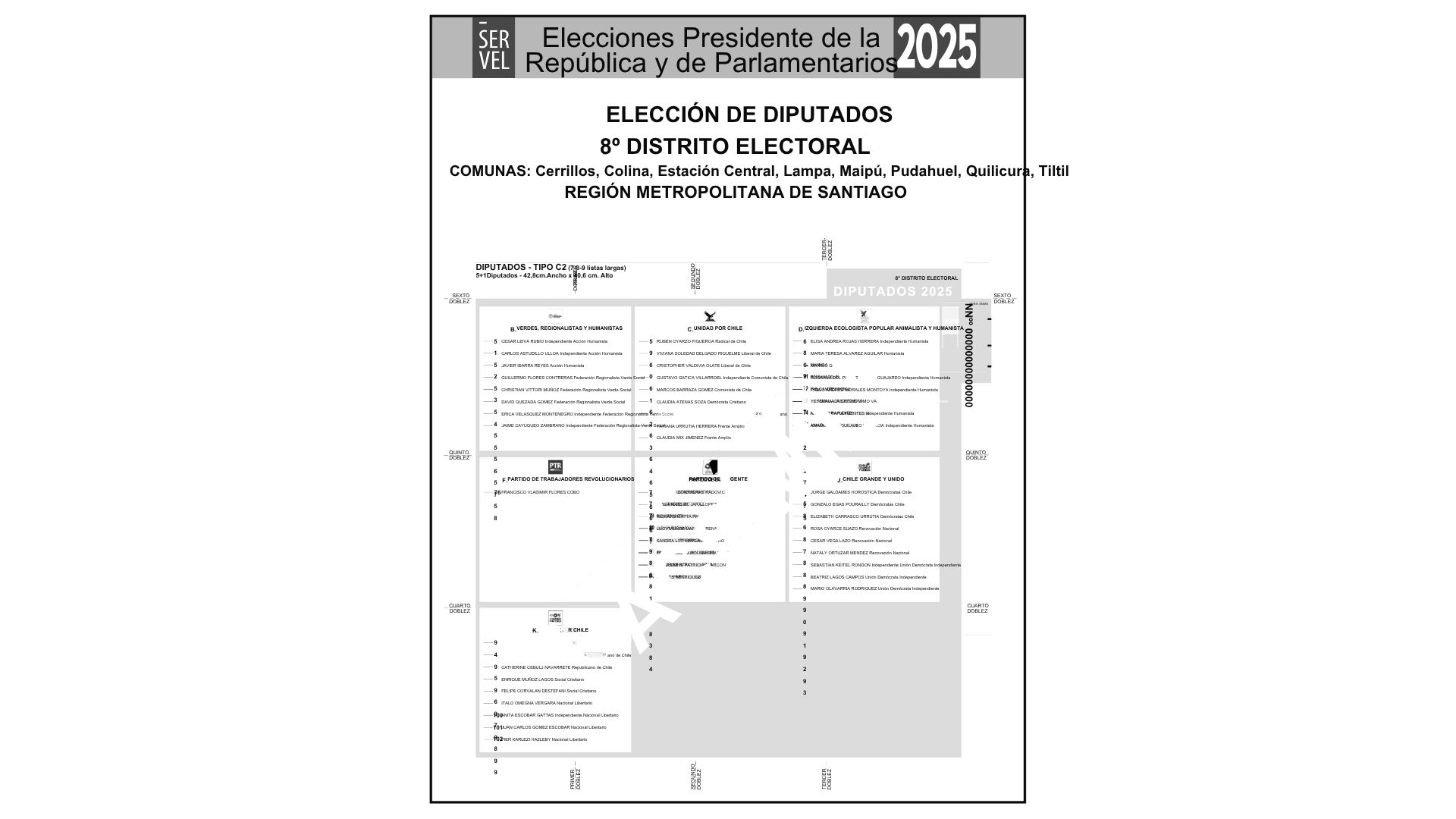 De acuerdo con el Servicio Electoral de Chile (Servel), se han presentado cerca de 1.096 candidaturas. Para conocer quiénes postulan en cada distrito, se puede ingresar al sitio oficial del Servel, seleccionar el tipo de elección, la región y el territorio electoral correspondiente.