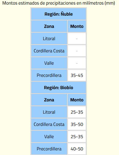 La Dirección Meteorológica de Chile (DMC) emitió este lunes un aviso meteorológico por probabilidad de lluvias para la zona centro del país.