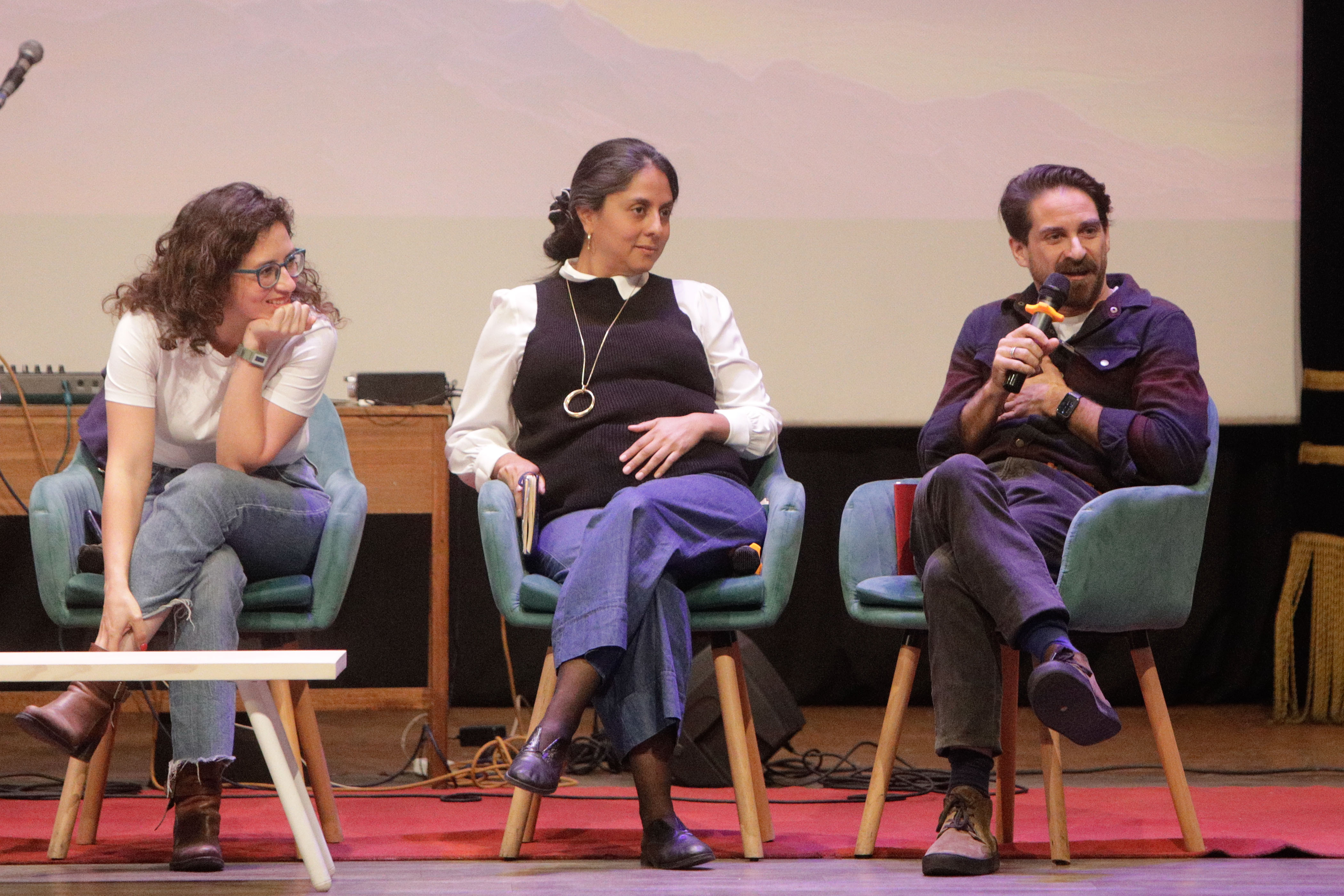 Gonzalo Winter, Francisca Gallegos y Gael Yeomans participan del primer congreso Ideológico del Frente amplio. FOTO: LUKAS SOLIS / AGENCIAUNO