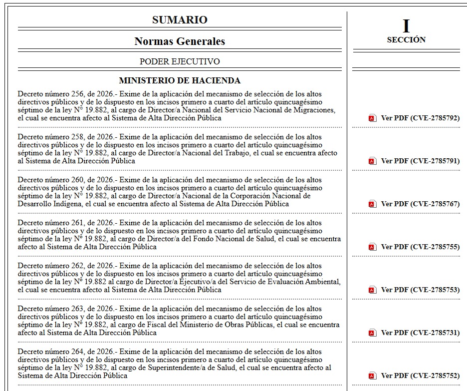 A partir de 2016, consignó el Diario Financiero, se estableció que quien llegue a la Presidencia de la República tendrá no solo la facultad de nombrar a ministros y subsecretarios, sino que también podrá remover a 12 altos cargos directivos que hayan asumido tras superar procesos de selección o concursos públicos a través del sistema de Alta Dirección Pública (ADP).