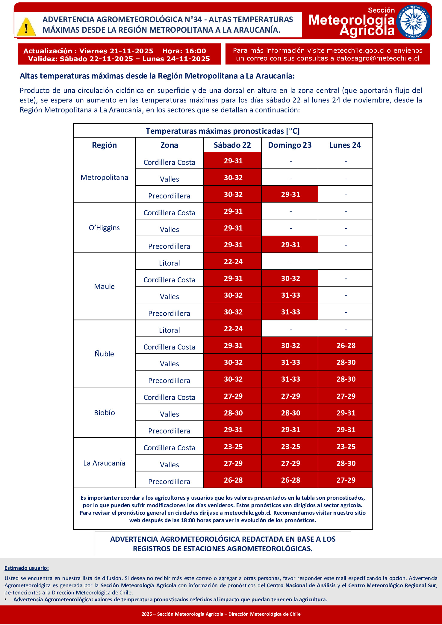 Revisa aquí (ver imagen) las máximas pronosticadas: