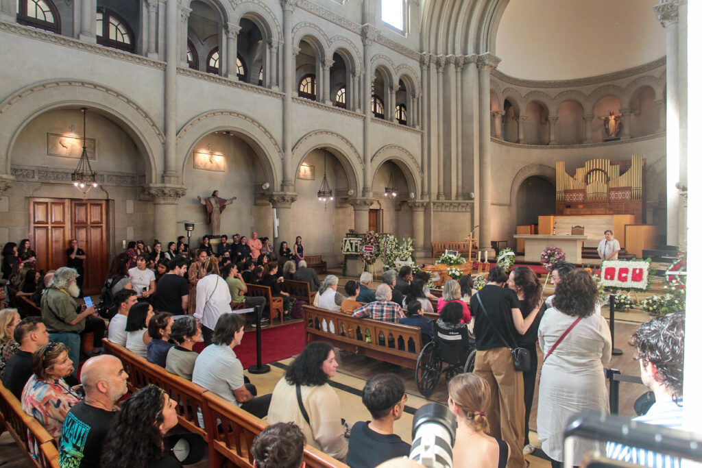Hasta el Campus Oriente de la Universidad Católica han llegado cientos de personas para despedir a Héctor “Tito” Noguera, actor, director de teatro y académico chileno.