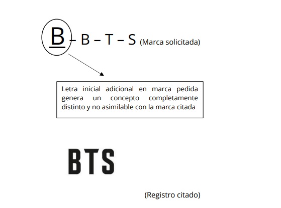 Pero la Inapi fue más allá para justificar su rechazo: “Los signos en controversia presentan semejanzas determinantes que impedirán una sana y pacífica coexistencia en el mercado, porque del análisis fonético de los signos marcarios en pugna se llega a la conclusión de que entre las cuatro consonantes que conforman la sigla “BBTS” de la solicitante y la de “BTS” del registro previo, las tres consonantes que las conforman son idénticas y sólo se diferencia por la repetición de la letra “B”, que en nada logra diferencias a un signo de otro, hecho que hace imposible su coexistencia pacífica en el mercado para distinguir los productos que amparan”.