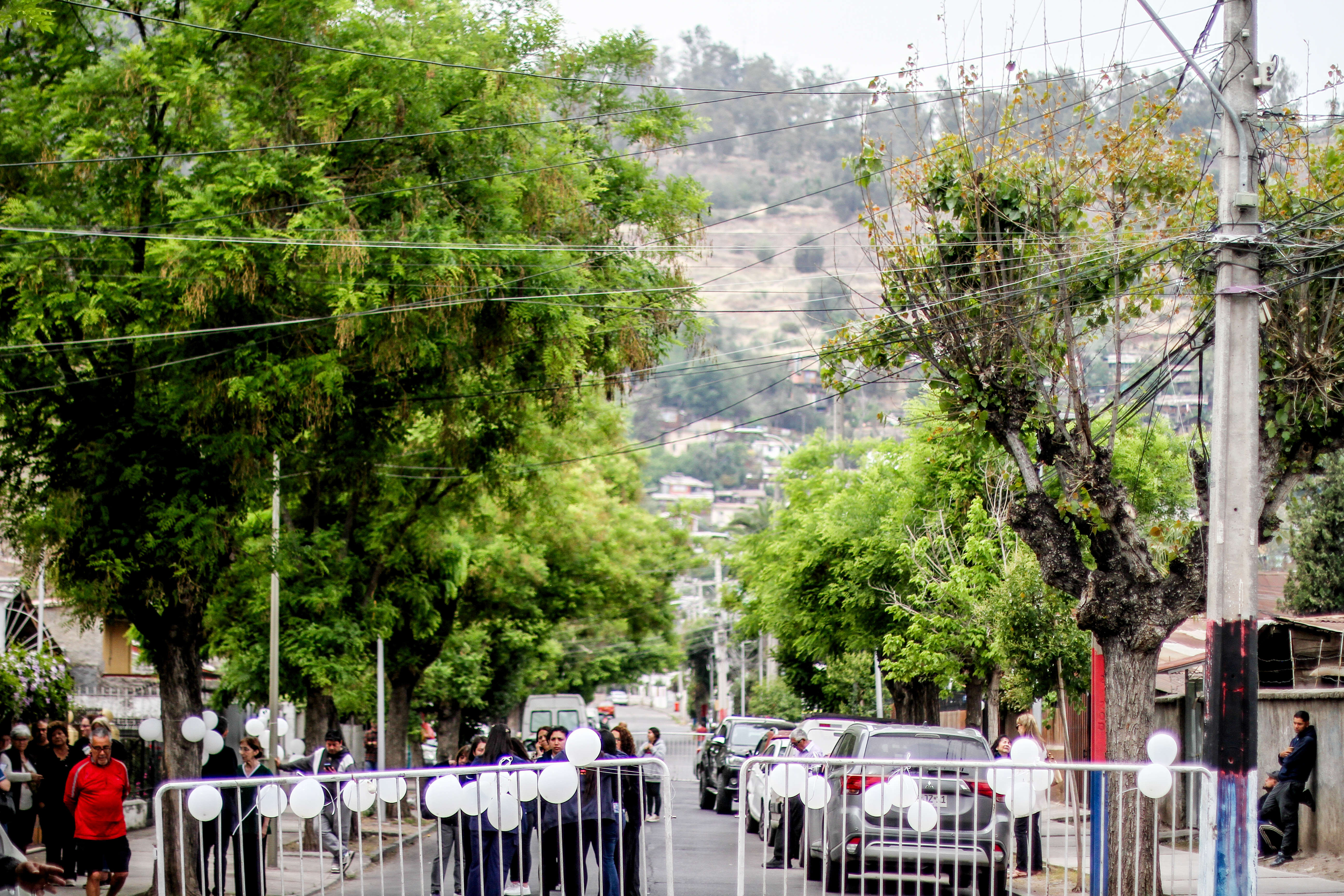 En la comuna de Recoleta se pueden apreciar globos blancos en las calles. Desde la noche del lunes 20 de octubre, la comunidad educativa se congregó en las afueras del Colegio Rafael Sanhueza Lizardi para realizar una velatón.