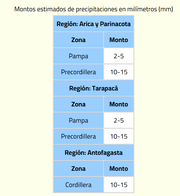 Este miércoles, la Dirección Meteorológica de Chile (DMC) emitió un aviso meteorológico por probabilidad de lluvias para la zona norte del país.