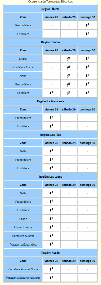 Este viernes, Dirección Meteorológica de Chile (DMC) emitió un aviso meteorológico por tormentas eléctricas en el centro-sur y sur del país.