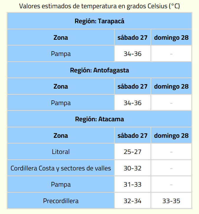 La Dirección Meteorológica de Chile (DMC) publicó este jueves un aviso meteorológico por altas temperaturas en la zona norte del país.