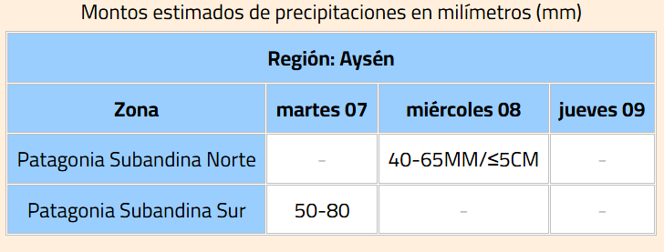 Este lunes, la Dirección Meteorológica de Chile (DMC) emitió una alerta meteorológica por probabilidad de lluvias para la Región de Aysén.