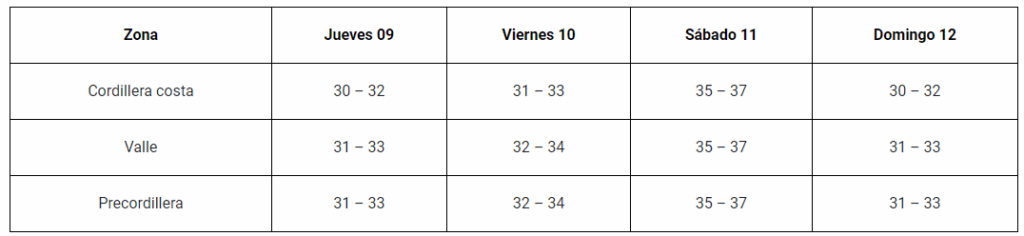 De acuerdo con los pronósticos de la DMC, se esperan temperaturas inusualmente altas en la cordillera de la costa, el valle y la precordillera.