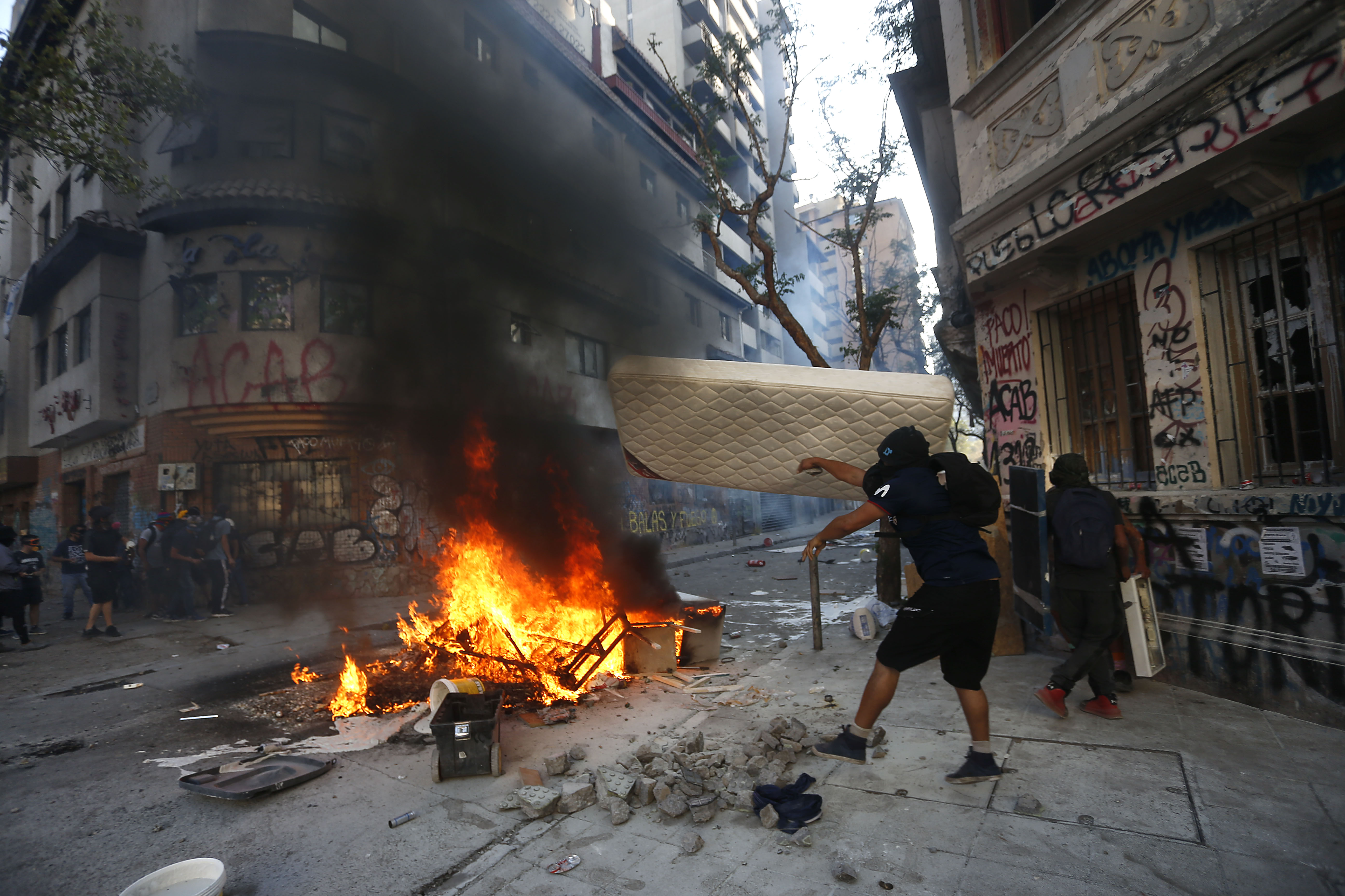 Aún no hay información respecto al origen del fuego en la casa, que se encuentra ubicada a un costado de la sede del partido comunista. En el lugar fueron levantadas barricadas, se lanzaron gases lacrimógenos y estuvieron trabajando nueve carros de Bomberos.