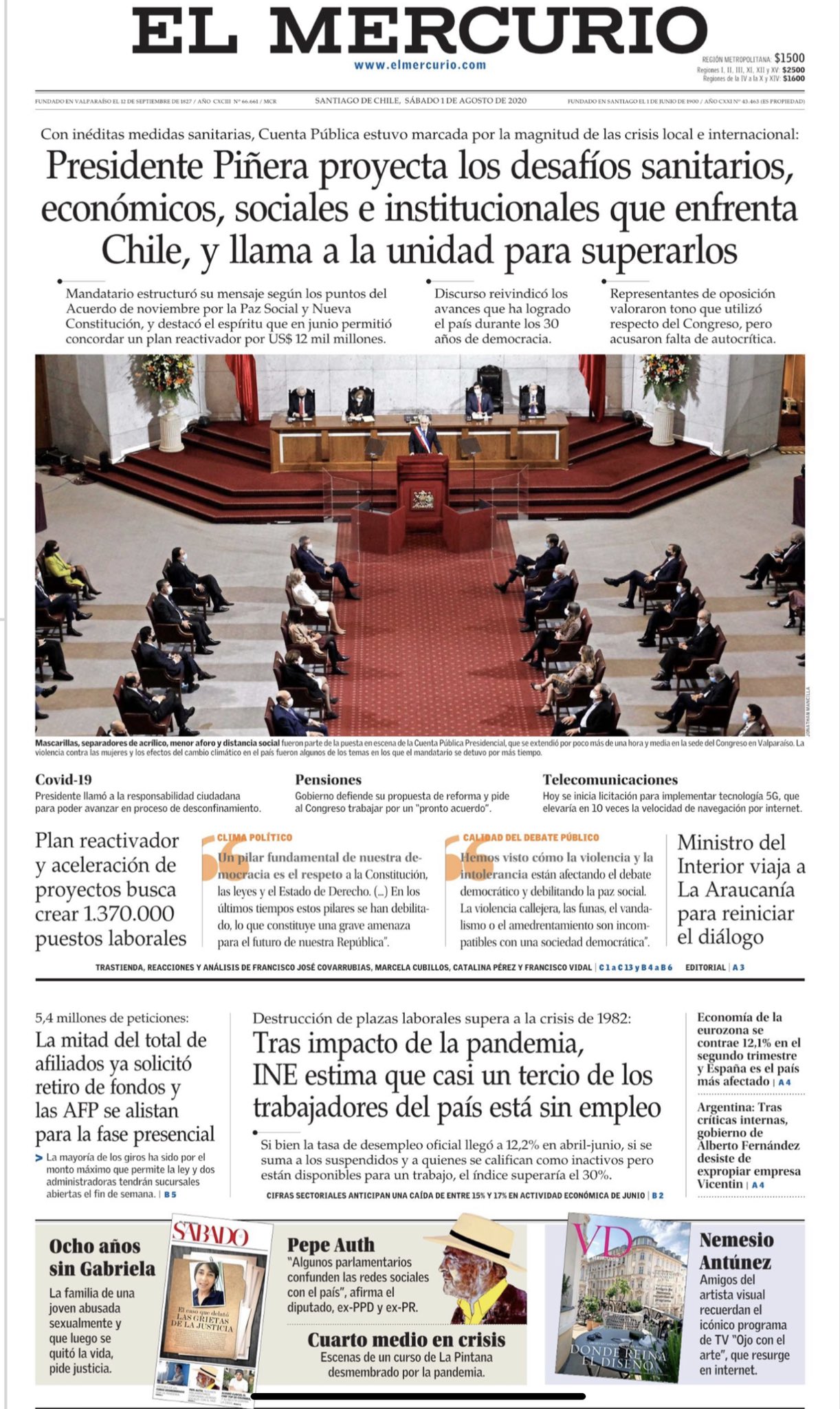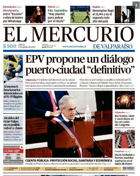 El Mercurio por su parte, apuntó a los desafíos que tiene el gobierno en materia sanitaria, económica, social e institucional en el contexto de la pandemia.