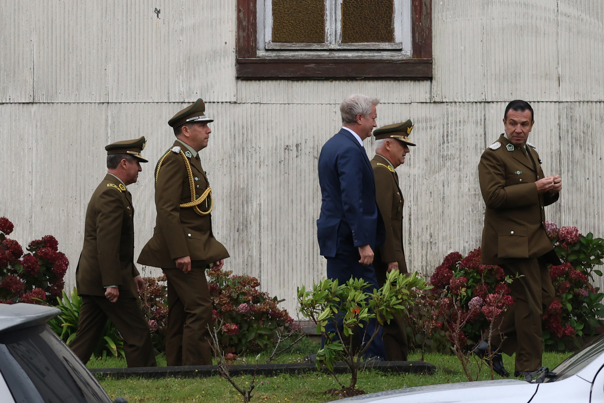 El jefe de Estado llegó a la zona sur del país junto a la ministra de Seguridad, María Trinidad Steinert, y el general director de Carabineros, Marcelo Araya, y fue recibido por el gobernador regional (s) de Los Lagos, Carlos Recondo, junto al delegado presidencial regional, Cristian Palma, y el alcalde de Puerto Montt, Rodrigo Wainraihgt, en la Base Aérea El Tepual de la Fuerza Aérea de Chile (FACh), ubicada en Puerto Montt.