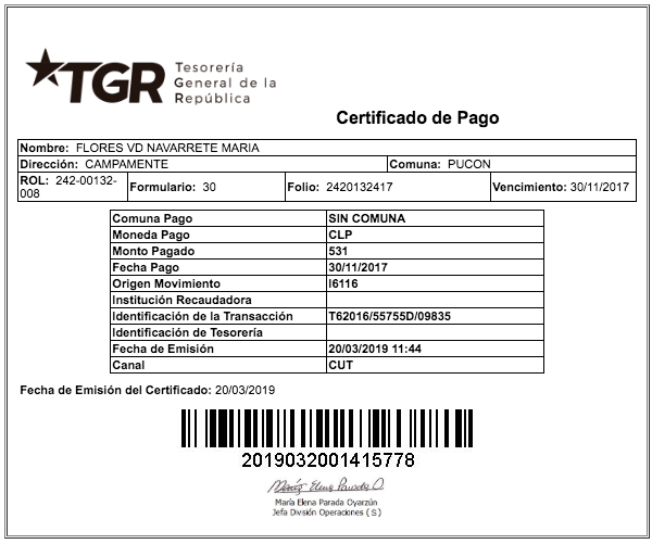 El último de estos corresponde al 30 de noviembre de 2017 por $531. Igual monto que se repite en el pago de septiembre del mismo año y que no varía significativamente en los periodos anteriores.