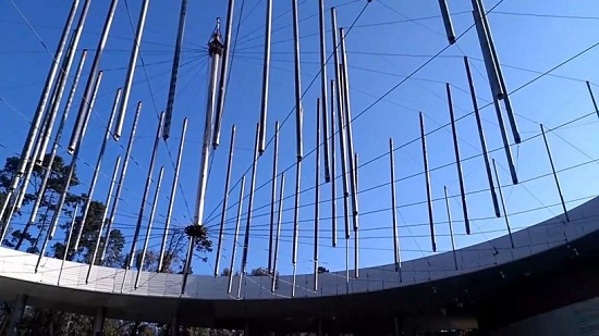 La estructura del cielo colgante está constituía por 85 tubos de acero que tienen un peso total de 38,6 toneladas. Estos, se conectan entre ellos a través de un sistema de cables de acero que convergen en un tubo central de 15,3 metros de altura y 32 centímetros de diámetro.