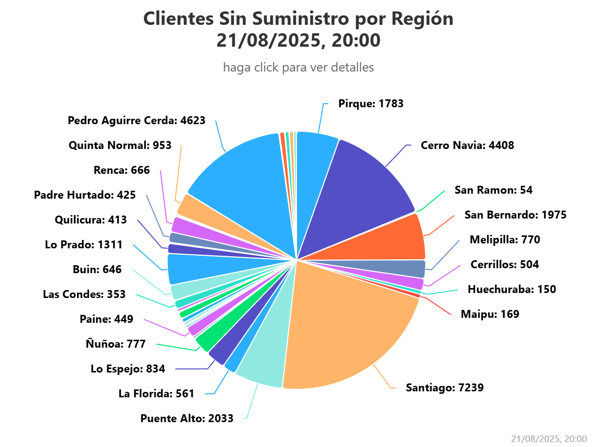 Según el reporte de la Superintendencia de Electricidad y Combustibles (SEC), cerca de 34.831 clientes de la Región Metropolitana se encuentran sin suministro eléctrico, en medio del sistema frontal que afecta a distintos puntos del país.