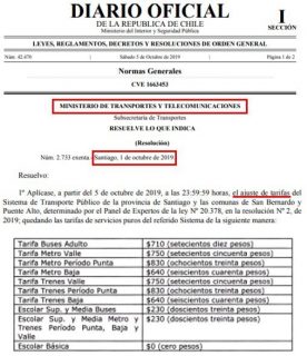 Con respecto a la tarifa del transporte, finalmente el gobierno envió un proyecto -que fue aprobado por el Congreso- y que congeló el alza y mantuvo las tarifas en los valores previos a la resolución.