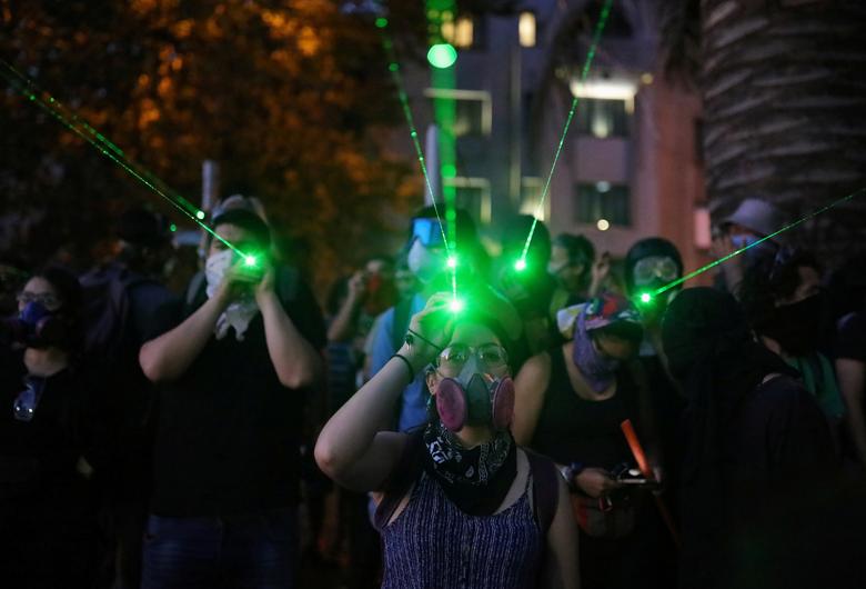 Los manifestantes brillan con láser durante una protesta contra el gobierno de Chile, en Santiago, Chile, 29 de noviembre de 2019. REUTERS / Pablo Sanhueza