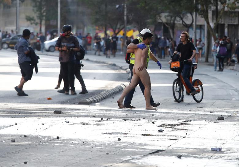 Un hombre desnudo camina durante una protesta contra el gobierno de Chile en Santiago, Chile, 28 de noviembre de 2019. REUTERS / Goran Tomasevic