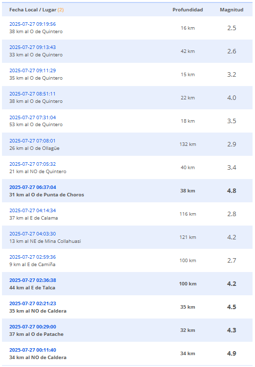 - Magnitud 4,8 a las 06:37 horas en Punta de Choros, Región de Coquimbo.