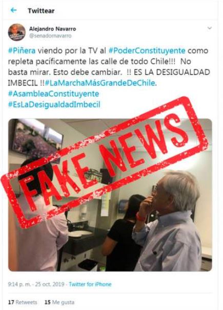 Parecía real, pero no lo era. La foto había sido intervenida en lo que mostraba la TV, ya que la imagen correspondía al 2017, cuando el mandatario veía la pantalla mientras Beatriz Sánchez entregaba su apoyo a Alejandro Guillier por las Elecciones Presidenciales.