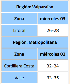 El fenómeno se desarrollará desde la mañana del miércoles 3 de diciembre hasta la noche del mismo día, afectando principalmente a las regiones de Valparaíso y Metropolitana.