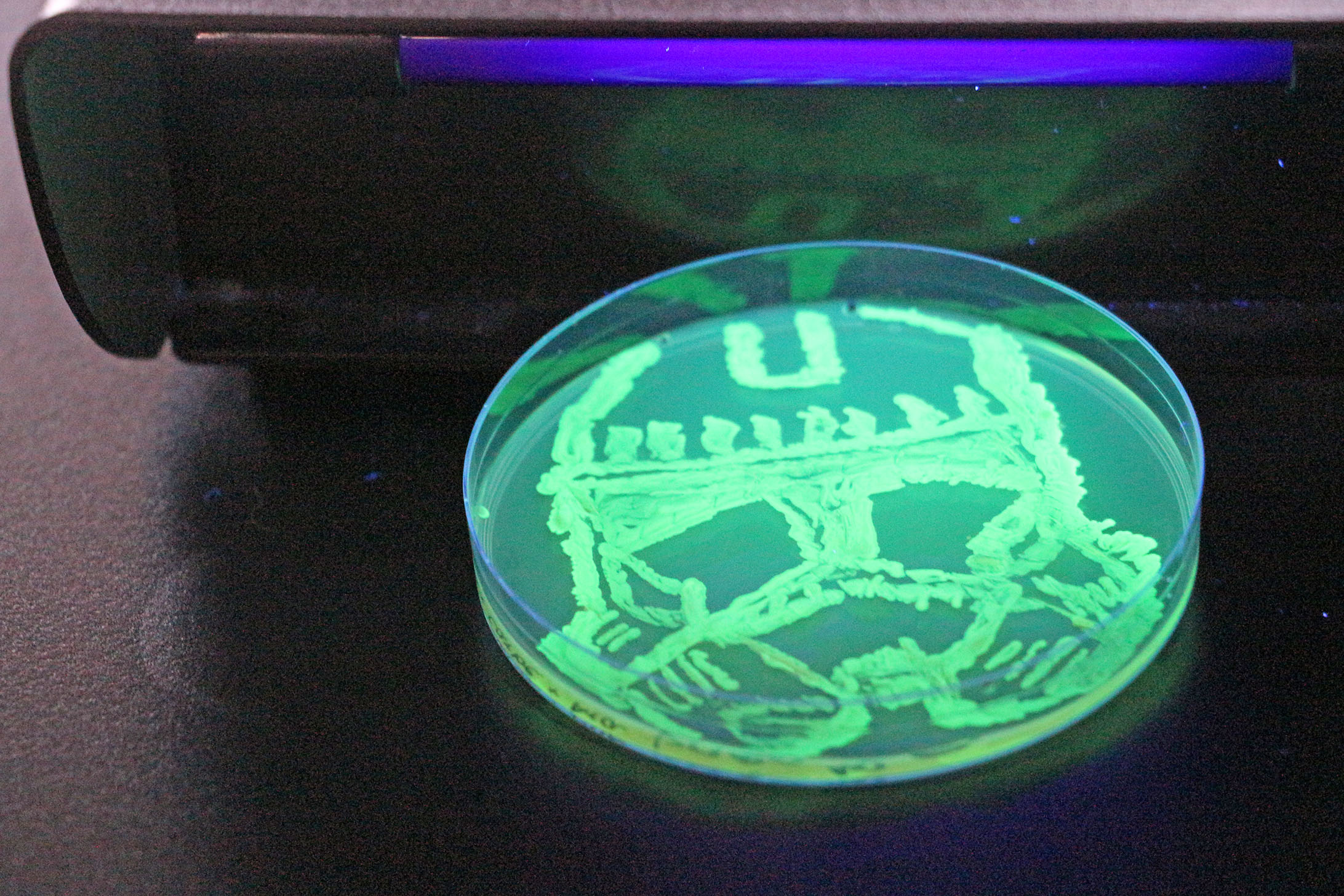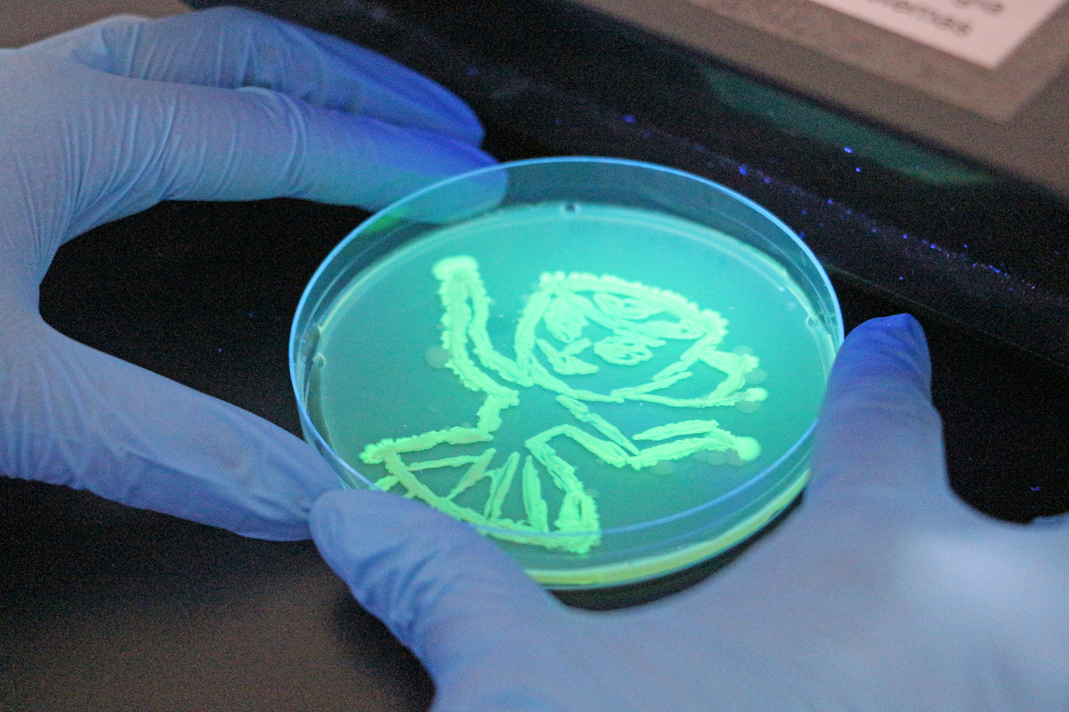 “Usamos la proteína verde fluorescente como una forma visible de enseñar la transformación bacteriana y el trabajo en biotecnología. Pero también abrimos espacio para que los estudiantes desarrollen arte con estas bacterias, como si fueran pintura”, explicó el profesor Daniel Garrido, director de Ingeniería Química y Bioprocesos UC.