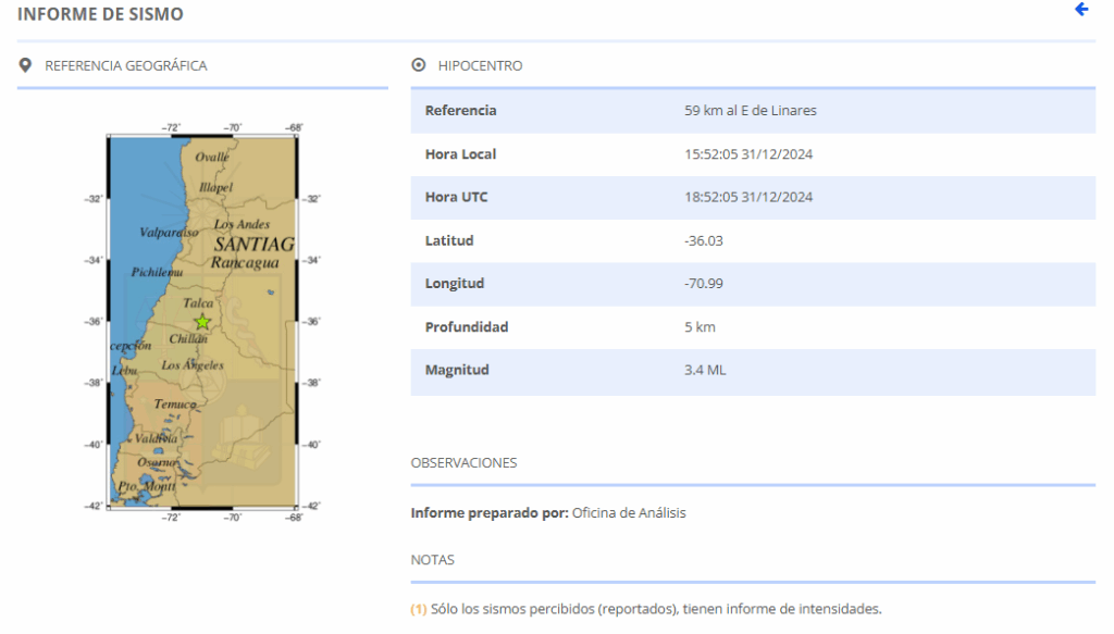 La tarde de este martes, un sismo de magnitud moderada afectó a la Región del Maule.