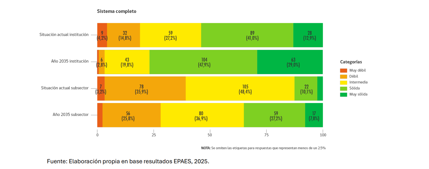 El estudio —correspondiente al sondeo EPAES 2025— también muestra una visión favorable hacia la próxima década: el 82% de las autoridades proyecta que en 2035 su institución mantendrá o alcanzará ese nivel de estabilidad.