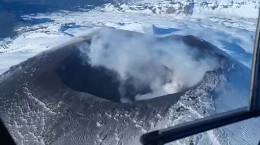 Imágenes de Carabineros en sobrevuelo a perímetro de exclusión por pulsos eruptivos en Volcán Villarrica