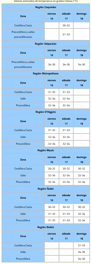 La Dirección Meteorológica de Chile (DMC) emitió un aviso meteorológico por altas temperaturas.