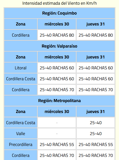 La Dirección Meteorológica de Chile (DMC) emitió un aviso meteorológico por probabilidad de viento en gran parte del país.