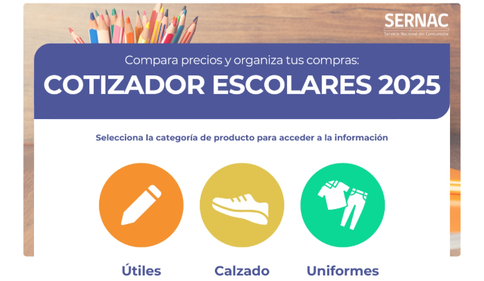 El Sernac anunció el lanzamiento de un Cotizador de Escolares, que permite a los apoderados y apoderadas cotizar productos, tanto de la lista de útiles, como uniformes y calzados.