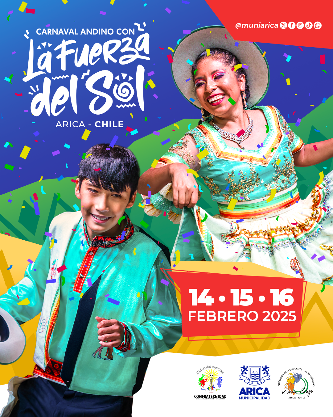 Colores, baile, música en vivo y todo el ritmo del caporal se vivirán en Arica durante tres días de carnaval: 14, 15 y 16 de febrero.